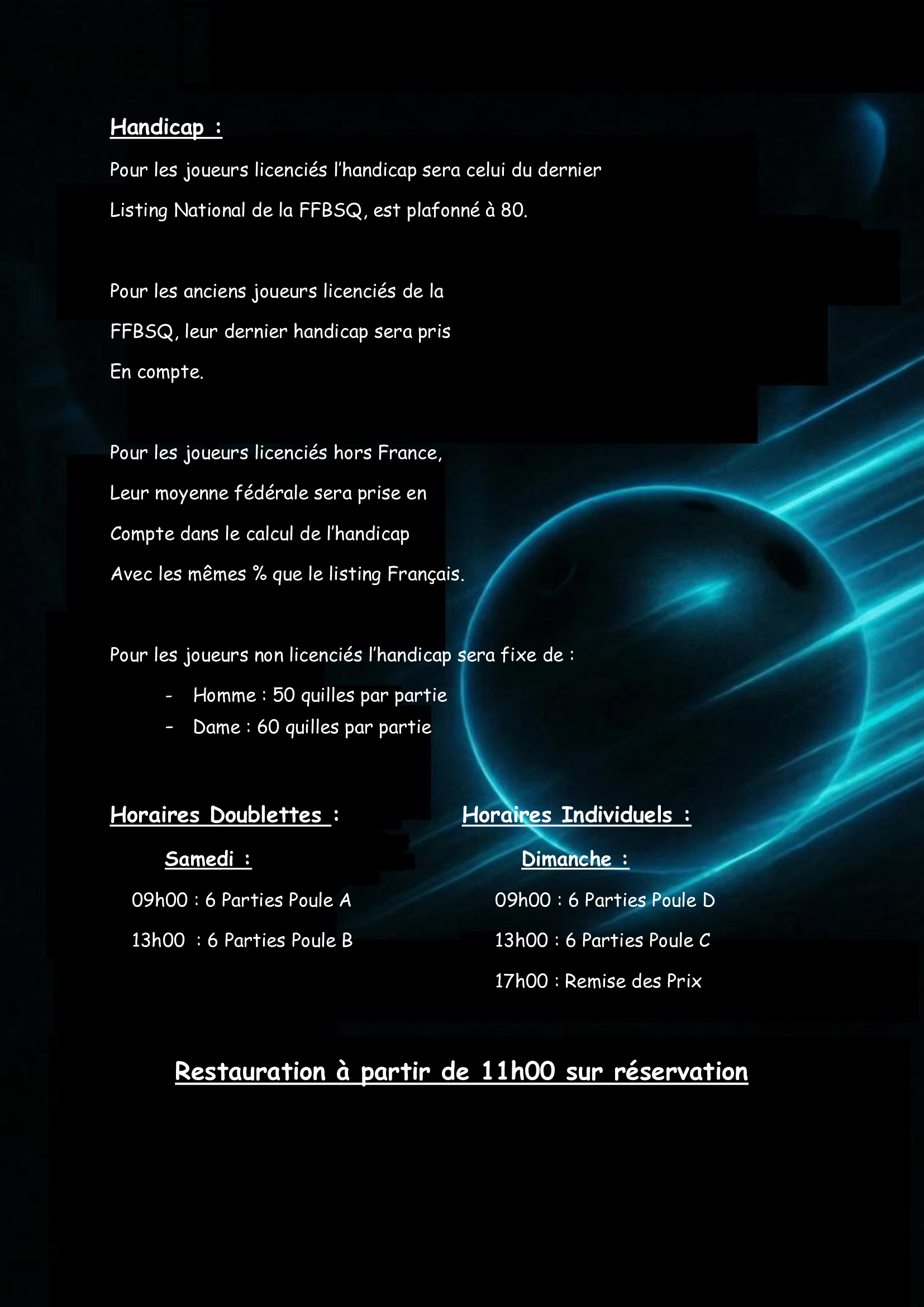 N’hésitez pas à consulter toutes nos formules, repas/boisson/bowling, snack+bowling, bar/bowling, etc…