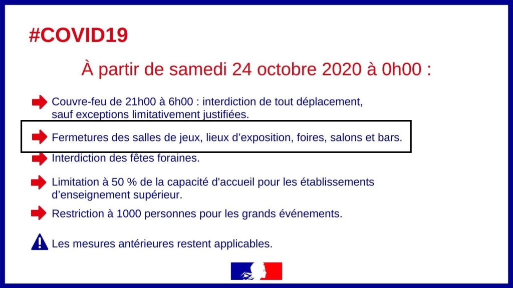 Suite à l’annonce de la Préfecture de l’Ain, et malgré toute notre bonne volonté pour vous accueillir nous sommes dans l’obligation de fermer à compter de ce vendredi 23 Octobre 2020 minuit pour une durée minimum de 3 semaines…